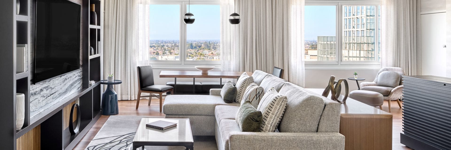 Relax in beautifully appointed hotel rooms and suites with plush bedding, marble bathrooms, hardwood floors and balconies with views of Anaheim. Recharge in the California sun in the sparkling outdoor pool or work out in the fully equipped fitness center. Indulge in fresh Californian cuisine made from locally grown ingredients or sample our restaurant's extensive bourbon collection.